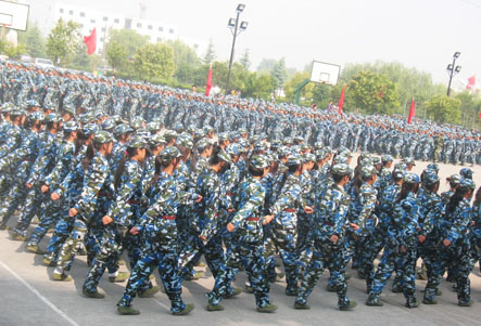 2009年军训汇报表演取得了圆满成功,我院的09级新生也即将面临大学生活中新的乐章,在此希望09级新生在以后的大学生活中能够坚持在军训生活中形成的良好习惯,努力的完善自己,做一名合格的大学生。