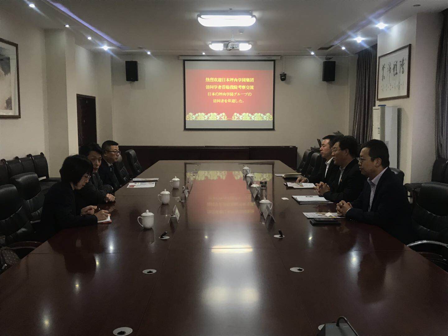 10月14日上午8点,日本坪内学园集团理事长坪内浩一,范恒亮,翻译胡斌一行抵达我院进行交流学习,杨国峰院长、朱介法院长、林军院长亲切接待了坪内学园集团坪内浩一理事长等主要领导。