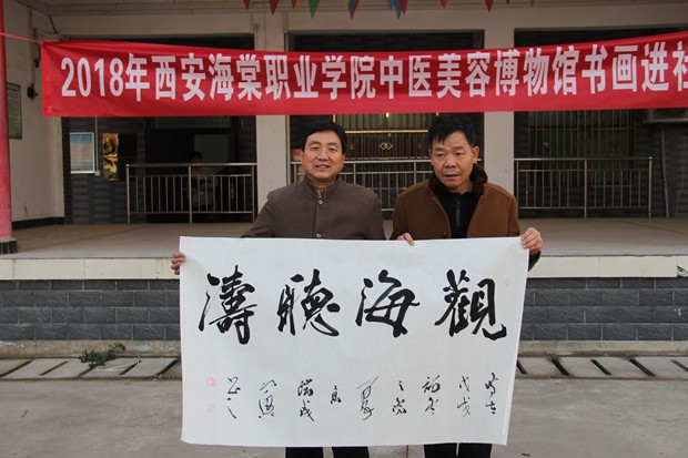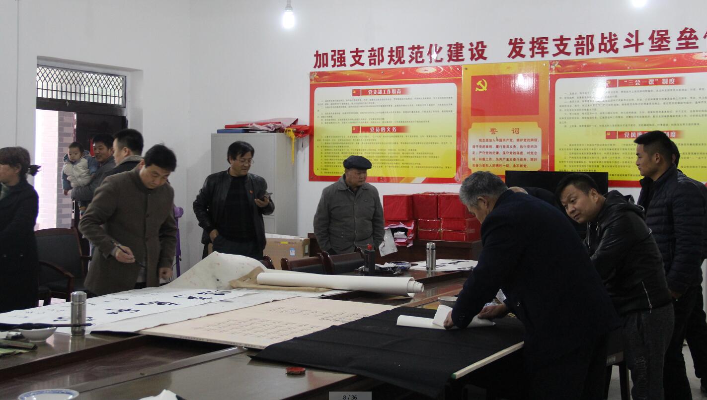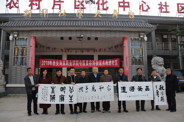 为进一步丰富社区居民的文化生活,继承弘扬中华民族优秀传统文化。2018年11月23日下午,beat365中文官方网站中医美容博物馆博物馆副馆长杨国峰,书画院李杰、刘志英、刘公义、杨克俭、高瑞成等书画家开展“书法进校园进社区”主题实践活动走进狄寨镇新华村社区,社区书记丝建琦、村长栗建宁等领导班子及社区村民代表60余人参加活动。