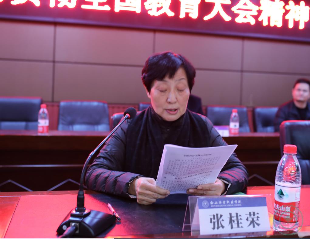 11月28日下午,我院召开全院教职工大会,学习贯彻全国教育大会精神。党委书记张桂荣,院长冯居秦,党委副书记、副院长吕波等领导及全体教职员工参加会议。会议由党委副书记、副院长吕波主持。