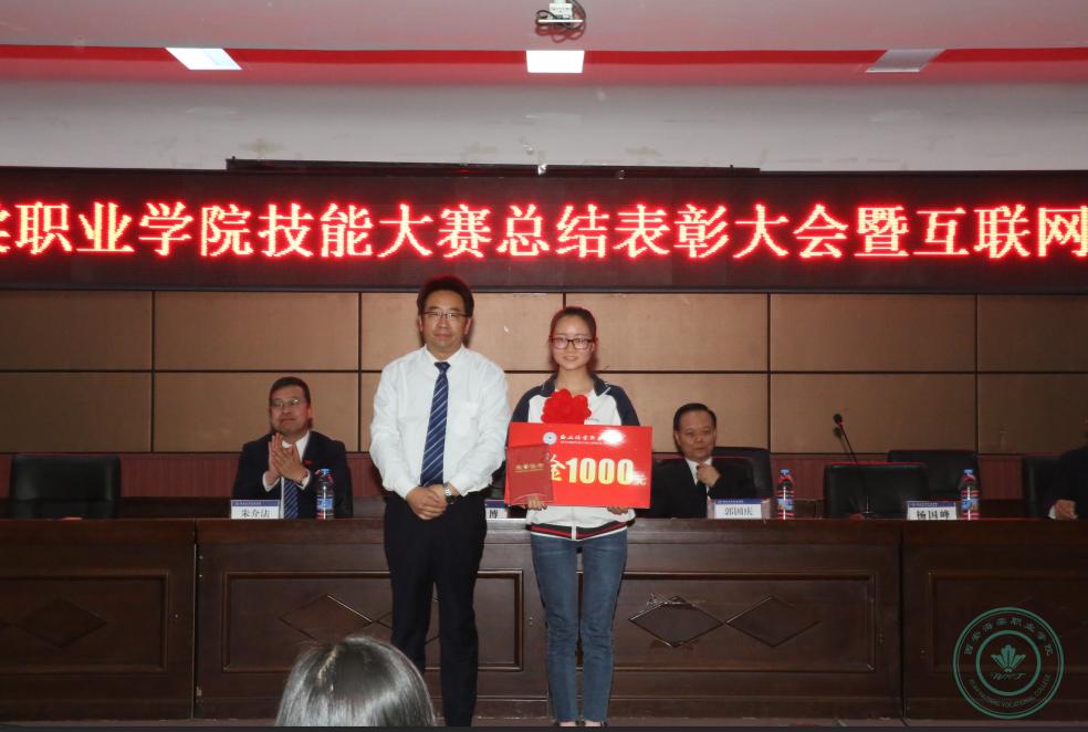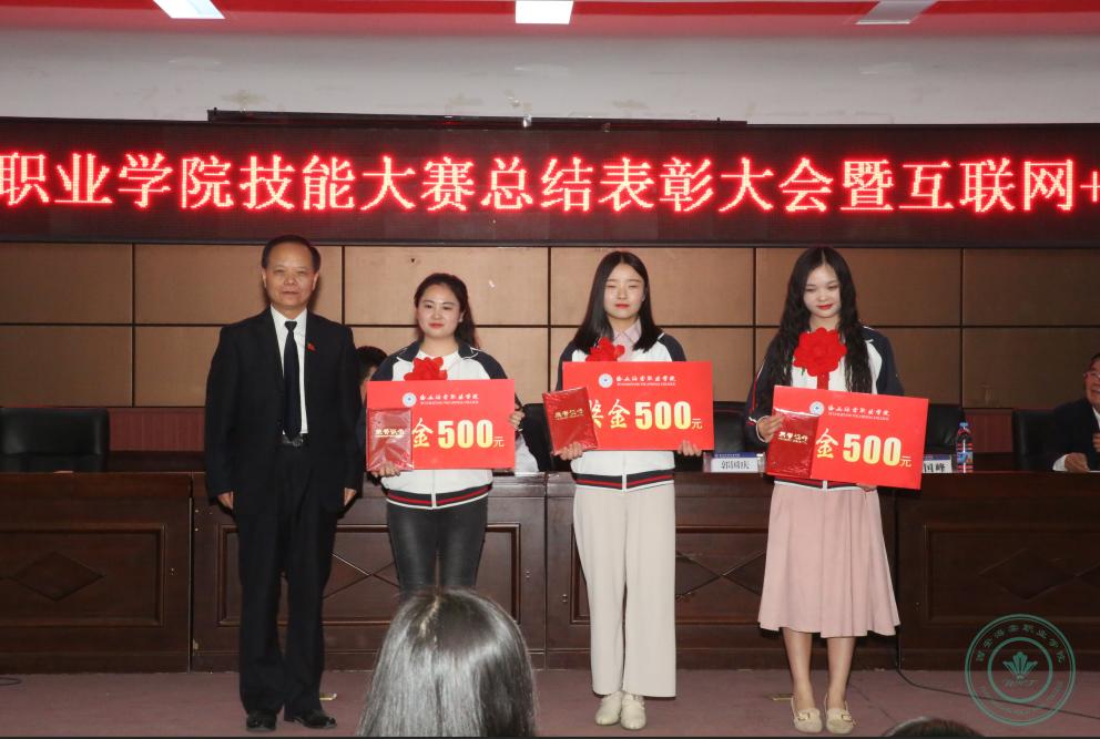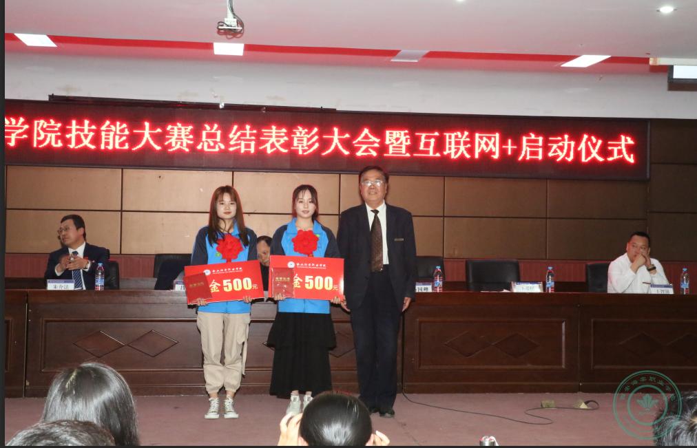 学院领导为职业技能大赛中获奖的学生颁发奖项。