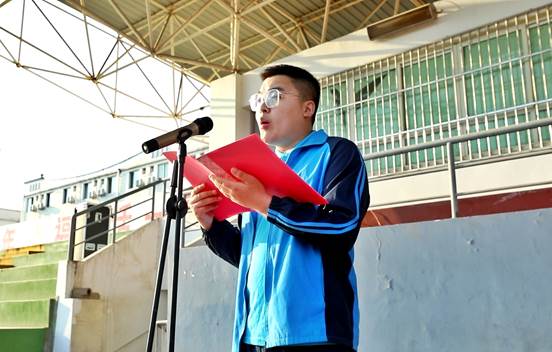 学生代表张辉博同学进行了国旗下的发言。他代表全体学生为祖国母亲送上了70周年华诞的生日祝福,并呼吁:作为当代大学生的我们应践行社会主义核心价值观;和谐校园、文化殿堂,需要我们用文明的行为来呵护。为营造良好的学习生活环境,作为青年学生,我们应该正身立己,树文明之风,践文明之行,以高昂的热情和积极的行动投身到和谐校园建设的工作中来。