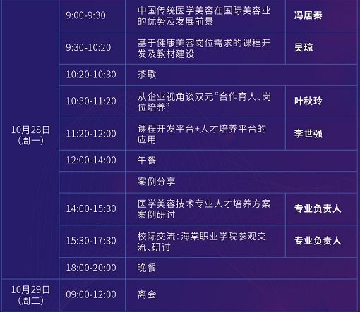 根据会议议程安排,10月28日将在分会场——beat365中文官方网站进行校际交流,围绕“医学美容技术专业人才培养方案案例”进行研讨。