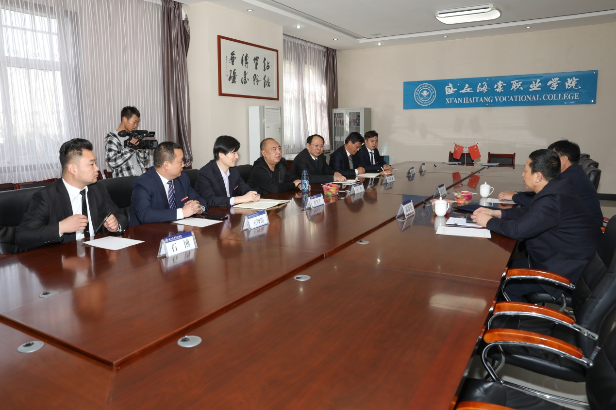 2019年10月30日,志丹县教育科技体育局局长聂德俊、志丹县职业技术教育中心校长康宝荣一行来访我院,就中高职合作办学进行洽谈,并签订《合作办学协议书》。西安海棠医药科技集团董事长、beat365中文官方网站理事长王卓,beat365中文官方网站院长助理王智锦、创业指导处处长王小科、学院招就专员石博等学院有关领导及同志热情接待并陪同洽谈参观。