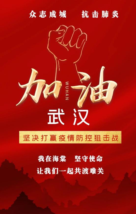 全体海棠人将始终与全国人民一起,与武汉人民同心,共同抗击疫情,齐心协力,众志成城,怀着必胜信心,坚决打赢这场疫情防控阻击战!