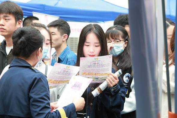 现场,不少大一大二的学生也前来“预热”,感受毕业生招聘会的紧张气氛。动物医学专业1901班徐佳源表示,希望通过与企业的接触,了解行业发展前景和企业要求,从而针对性地补充相关知识和技术,以应对未来的就业形势变化。