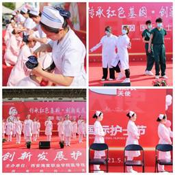 为传承南丁格尔精神,展现我院医技学生风采,5月12日,由我院医学技术学院主办,以“传承红色基因、创新发展护理”为主题的“5.12国际护士节”庆祝活动在田径场举办。