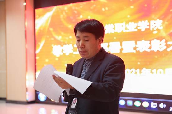 10月13日,教学系统在教师发展中心组织召开了教学工作部署暨表彰大会。我院副院长杨国峰、教务处处长张建利、就业创业处处长吴刚,各二级学院相关部门负责人,学生代表及创业指导教师代表参加本次会议。会议由教务处处长张建利主持。