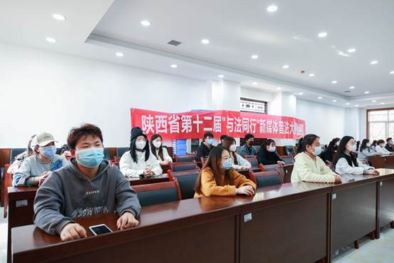 随后郁昱院长宣读了“中共陕西省委普法工作领导小组办公室陕西省司法厅关于开展‘美好生活·民法典相伴’陕西省第十二届‘与法同行’新媒体普法大赛进校园活动”的通知。