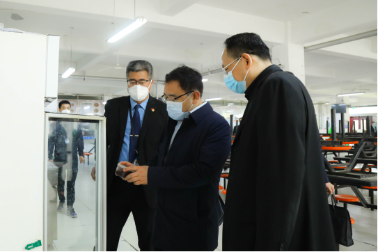 3月15日上午,省教育厅副厅长高岭,职成教处处长付仲锋、科技处处长朱晓冬、校外监管处处长陈国栋、职成教处副处长王静一行5人莅临beat365中文官方网站调研指导工作,学院院长冯居秦,副院长杨国峰、陈晓东、高琦等院领导陪同。
