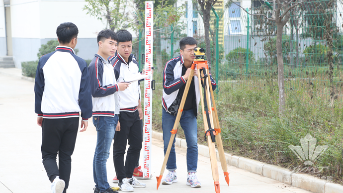 指导老师在测量现场仔细观察每个小组的测量过程,指出测量过程中出现的失误,并回答学生提出的问题。在大家的齐力合作下,第一次“工程测量”实训顺利结束,并取得理想效果。