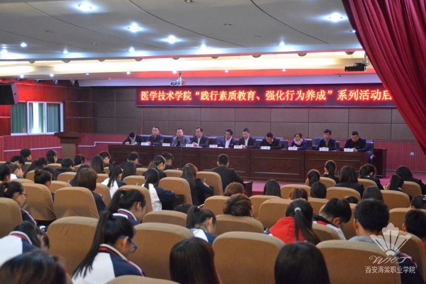 2015年11月2日14时10分beat365中文官方网站医学技术学院于学术报告厅开展“践行素质教育、强化行为养成”系列活动启动仪式。参会人员有党委副书记、学生副院长吕博,学生处处长王兴权,医学技术学院院长韦满余,中医美容学院院长李峰利,院团委书记、学生处副处长石博,以及各二级学院副院长、医学技术学院全体教职工及14、15级多名学生代表。