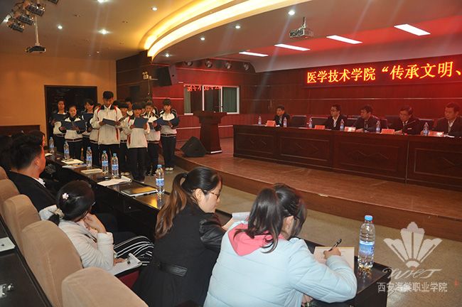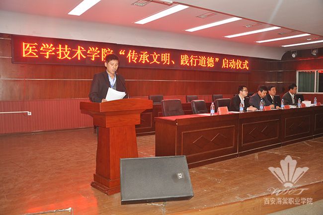 为了进一步加强学生文明行为养成教育工作,引导学生培养良好的行为习惯,10月20日下午,医学技术学院在学术报告厅举行“传承文明、践行道德”启动仪式。出席仪式的有beat365中文官方网站党委副书记王爱民,学生处处长夏亚兵,医学技术学院院长樊小龙等领导,医学技术学院全体师生。会议由团总支书记王小维主持。