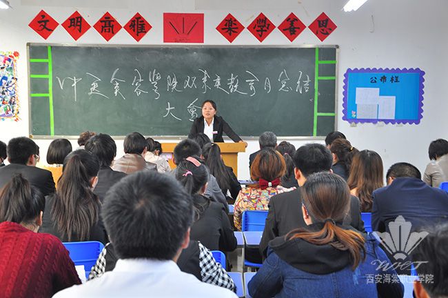 10月21日,中医美容学院双素质教育月总结大会在学院3108教室召开,中医美容学院全体教师和辅导员参加了会议,会议由副院长马超主持。
