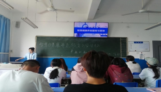 智慧养老服务与管理专业则以“智慧养老,未来已来”为题,由高歌老师宣讲。高老师首先向学生讲解了本专业在科技发展与人口老龄化的双重背景下专业开设的背景,解读了以及国家大力鼓励发展智慧健康养老管理与服务专业下发的重要文件,强调大力支持养老服务事业,加强相关专业人才培养的必要性。接着从智慧养老管理的最新理念和技术应用到物联网、大数据、人工智能等前沿技术与养老服务深度融合。此外,她鼓励学生积极参与养老专业各类技能大赛赛项,通过竞赛锤炼专业技能,拓宽视野,为未来职业生涯铺垫坚实基石。她强调,智慧养老不仅能够提升老年人生活质量,也是未来社会服务的重要方向。