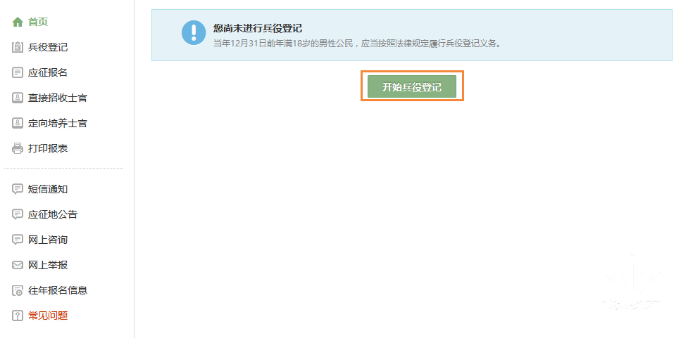 登录系统以后,点击右侧的“开始兵役登记”进行报名工作啦!