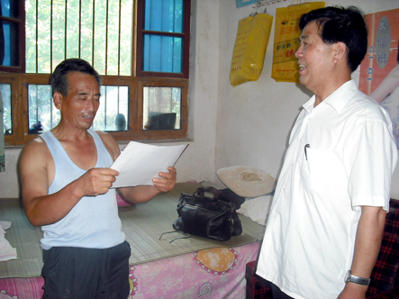 7月27日13:00,学院党委副书记王爱民亲手将入学通知书送到洛南县寺坡乡某考生父亲手中。