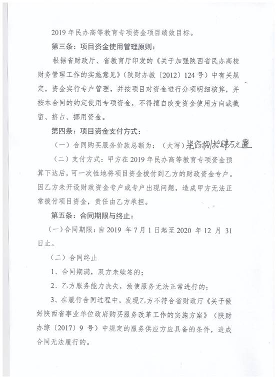 【公示】2019年民办高等教育专项资金政府购买服务合同书公示